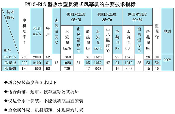 RM-S系列熱風(fēng)幕機(jī)是以熱水為熱媒,以冷水為冷媒換熱器采用STTL型節(jié)能換熱器,換熱效率高,空氣阻力小。分為熱水型和冷熱水型兩種機(jī)型,熱水型冬季使用熱水吹熱風(fēng),夏季吹自然風(fēng);冷熱水型冬季使用熱水吹熱風(fēng),夏季使用冷水吹冷風(fēng)。