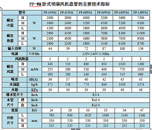 FP-WM臥式明裝風(fēng)機(jī)盤管: