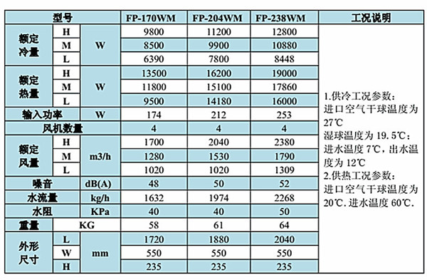 FP-WM臥式明裝風(fēng)機(jī)盤管是專為辦公室、家庭、別墅、餐廳、門店等場(chǎng)所推出的一種新型風(fēng)機(jī)盤管。它的機(jī)外靜壓為30Pa,設(shè)計(jì)風(fēng)量為340m3/h—2380 m3/h。額定冷量為2-13KW,額定熱量為3.2-20KW,單臺(tái)適用于13-90平米的房間。臥式明裝盤管表面采用靜電噴涂處理,色彩高雅,外形美觀,可理想的吊裝在天花板下任何位置,不過(guò)多占用室內(nèi)面積,便于安裝,可與室內(nèi)裝飾相稱,特別適用于舊建筑的空氣調(diào)節(jié)工程改造,可減少管道,節(jié)約費(fèi)用。