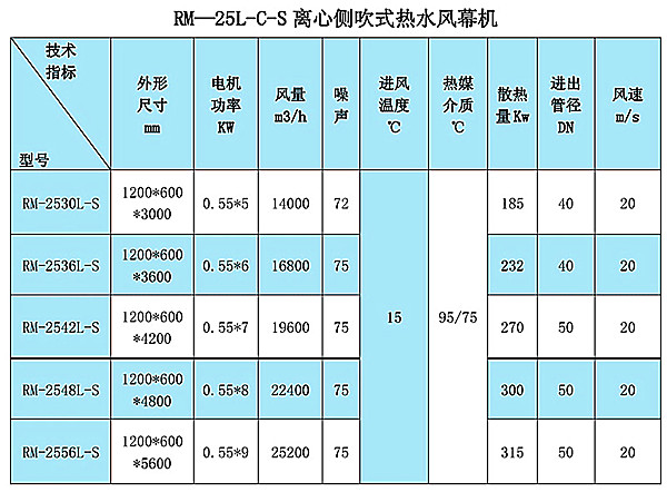 RM25-L-C-S(Q)離心側(cè)吹式風(fēng)幕機(jī)可以以熱水或蒸汽為熱媒,是外形尺寸大、阻斷效果好的裝配式機(jī)型。該機(jī)型適合安裝在高度3米以上,寬度6米以?xún)?nèi)的門(mén)洞側(cè)面。適用于大型的倉(cāng)庫(kù)、廠(chǎng)房的高大門(mén)洞使用,正常選擇雙側(cè)吹風(fēng)方式,門(mén)洞寬度小于2.5米時(shí)可以選用單側(cè)吹風(fēng)。