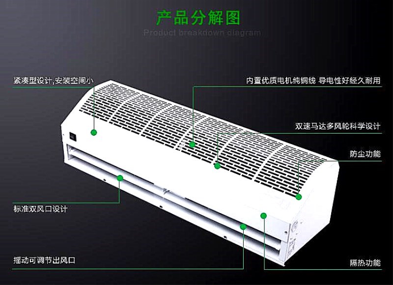 加強(qiáng)風(fēng)貫流式風(fēng)幕機(jī)技術(shù)特點(diǎn):