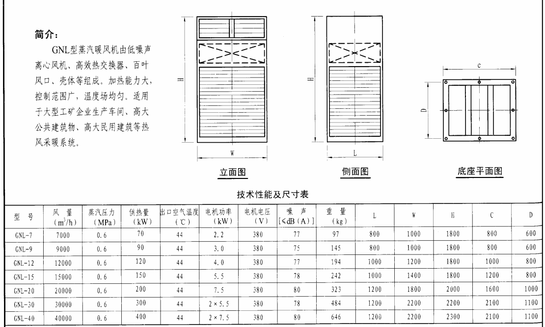GNL-20型蒸汽暖風(fēng)機(jī),由低噪音離心風(fēng)機(jī)、高效熱交換器、百葉風(fēng)口、殼體組成。加熱能力大,控制范圍廣,溫度場均勻,適用于大型工礦企業(yè)生產(chǎn)車間