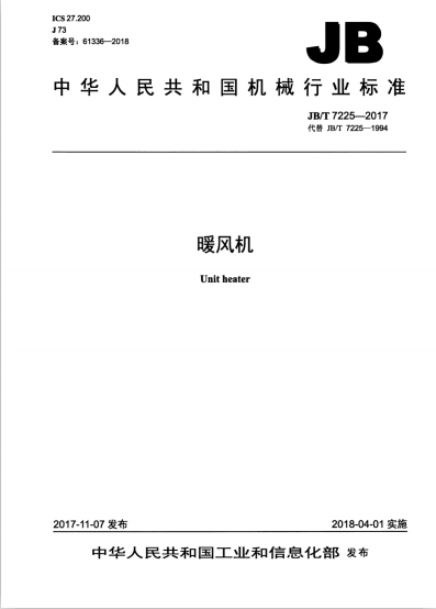 新的暖風機行業(yè)標準代替了原有的JB/T7225-1994,相比舊標準,主要的技術變化如下: